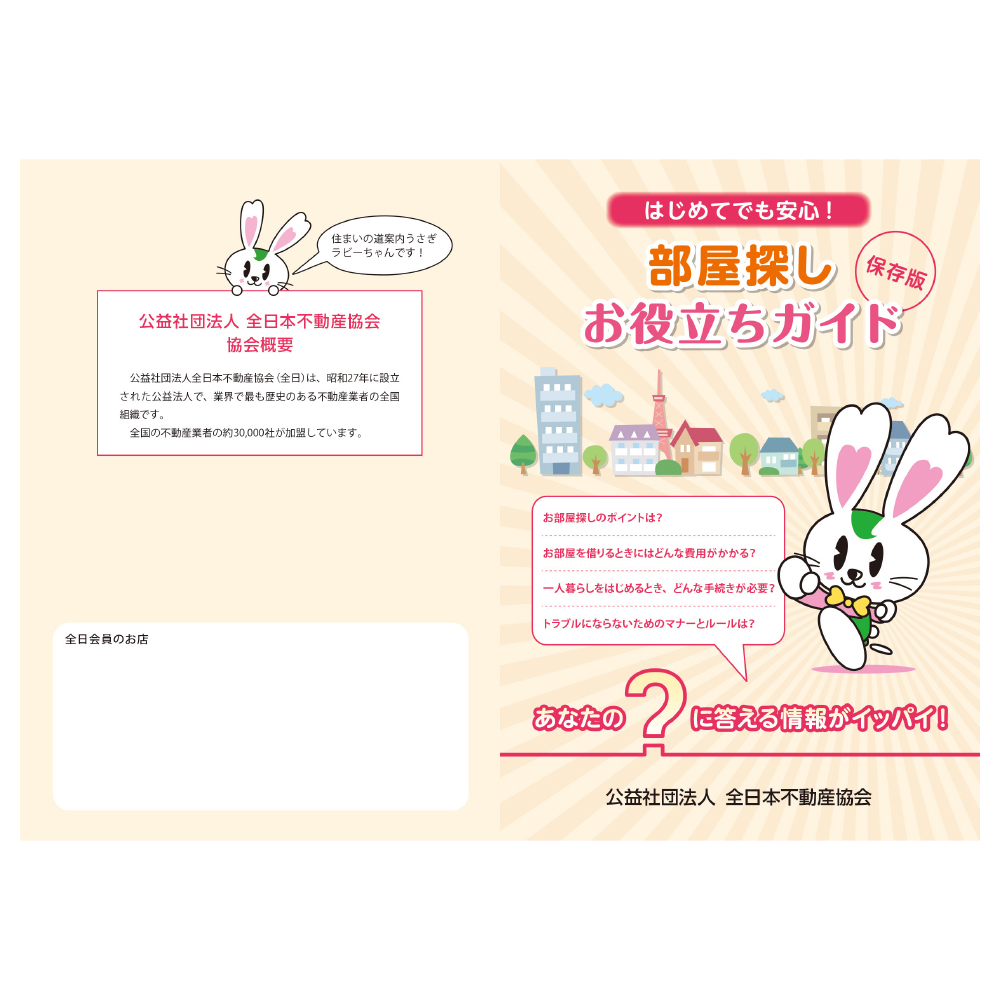 全日本不動産協会様の「部屋探しお役立ちガイド」冊子のデザイン制作をさせていただきました。