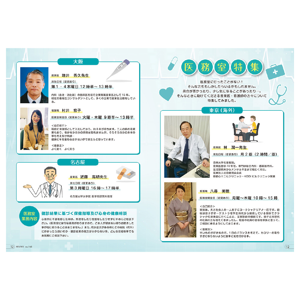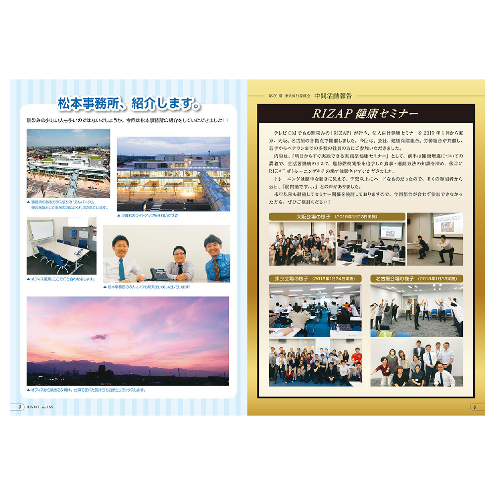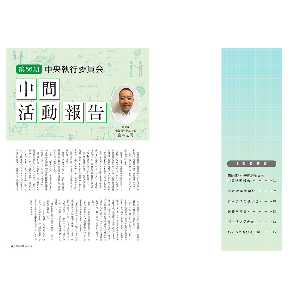 稲畑産業労働組合機関誌「HIVIKI」のページデザインを2017年の161号から2019年の165号まで担当しました。